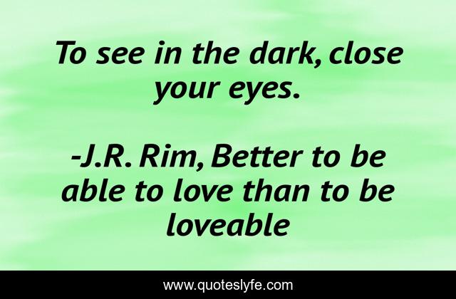 "J.R. Rim, Better to be able to love than to be loveable Quotes." Quoteslyfe.com, 2025. Sun. 07 Dec. 2025. <https://www.quoteslyfe.com/quote/To-see-in-the-dark-close-your-150202>.