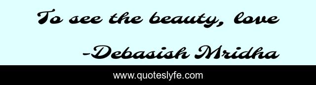 "Debasish Mridha Quotes." Quoteslyfe.com, 2025. Sun. 07 Dec. 2025. <https://www.quoteslyfe.com/quote/To-see-the-beauty-love-61416>.