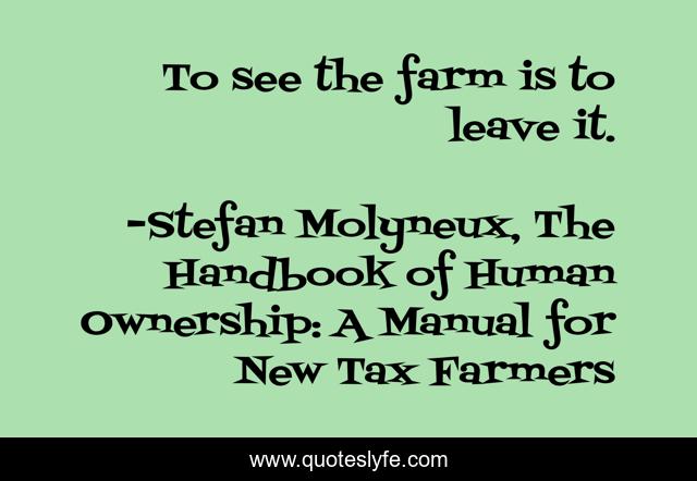 "Stefan Molyneux, The Handbook of Human Ownership: A Manual for New Tax Farmers Quotes." Quoteslyfe.com, 2025. Tue. 09 Dec. 2025. <https://www.quoteslyfe.com/quote/To-see-the-farm-is-to-leave-257794>.