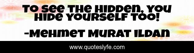 This page presents the quote "To see the hidden, you hide yourself too!". Author of this quote is Mehmet Murat ildan. This quote is about turkish-aphorisms, hide, mehmet-murat-ildan, ildan-wise-sayings, turkish, ildan-wisdom, turkish-sayings, turkish-playwrights, turkish-wisdom-words,.