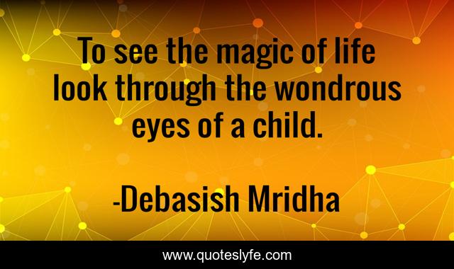 This page presents the quote "To see the magic of life look through the wondrous eyes of a child.". Author of this quote is Debasish Mridha. This quote is about life, magic-of-life, eyes-of-a-child, philosophy, debasish-mridha, quotes, inspirational, enthusiasm, debasish-mridha-m-d,.