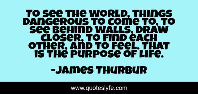 This page presents the quote "To see the world, things dangerous to come to, to see behind walls, draw closer, to find each other, and to feel. That is the purpose of life.". Author of this quote is James Thurbur. .