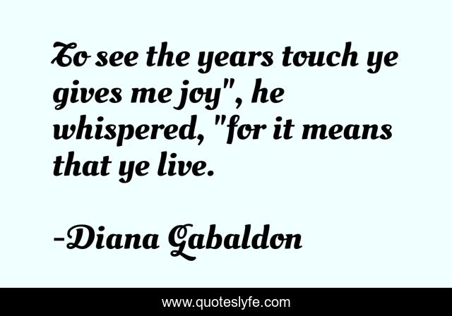 This page presents the quote "To see the years touch ye gives me joy", he whispered, "for it means that ye live.". Author of this quote is Diana Gabaldon. This quote is about romance, highlander, scotland, historical-fiction,.