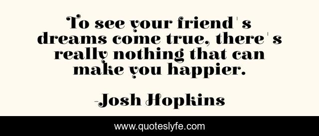 This page presents the quote "To see your friend's dreams come true, there's really nothing that can make you happier.". Author of this quote is Josh Hopkins. This quote is about see, friend,.