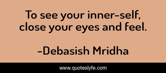 This page presents the quote "To see your inner-self, close your eyes and feel.". Author of this quote is Debasish Mridha. This quote is about debasish, feel, mridha, philosophy, debasish-mridha, inner-self, close-your-eyes,.