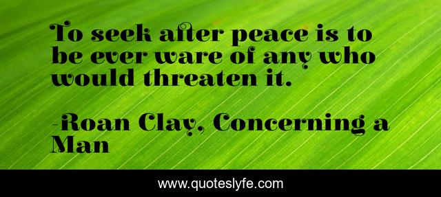 "Roan Clay, Concerning a Man Quotes." Quoteslyfe.com, 2025. Fri. 05 Dec. 2025. <https://www.quoteslyfe.com/quote/To-seek-after-peace-is-to-be-82652>.