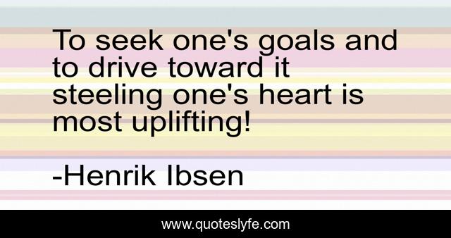 This page presents the quote "To seek one's goals and to drive toward it steeling one's heart is most uplifting!". Author of this quote is Henrik Ibsen. .