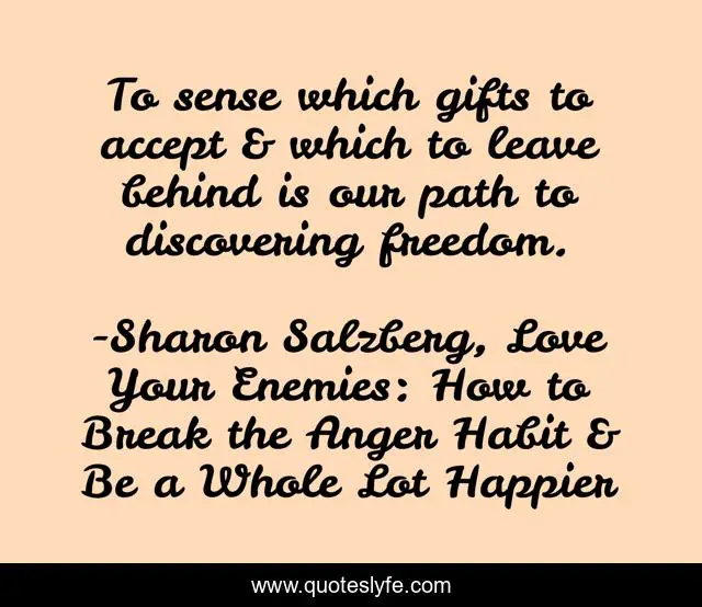 "Sharon Salzberg, Love Your Enemies: How to Break the Anger Habit & Be a Whole Lot Happier Quotes." Quoteslyfe.com, 2025. Fri. 05 Dec. 2025. <https://www.quoteslyfe.com/quote/To-sense-which-gifts-to-accept-which-135413>.