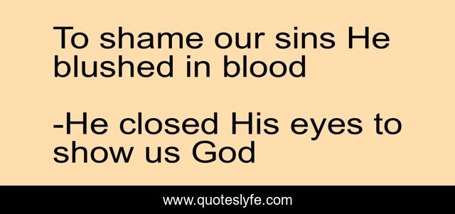 "He closed His eyes to show us God Quotes." Quoteslyfe.com, 2025. Fri. 05 Dec. 2025. <https://www.quoteslyfe.com/quote/To-shame-our-sins-He-blushed-in-122327>.