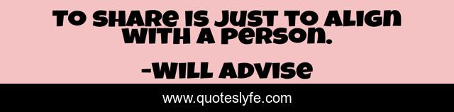 This page presents the quote "To share is just to align with a person.". Author of this quote is Will Advise. This quote is about meaning, sharing, alignment, truth, people,.