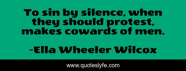 "Ella Wheeler Wilcox Quotes." Quoteslyfe.com, 2025. Sat. 06 Dec. 2025. <https://www.quoteslyfe.com/quote/To-sin-by-silence-when-they-should-176346>.