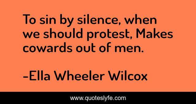 "Ella Wheeler Wilcox Quotes." Quoteslyfe.com, 2025. Sun. 07 Dec. 2025. <https://www.quoteslyfe.com/quote/To-sin-by-silence-when-we-should-326525>.