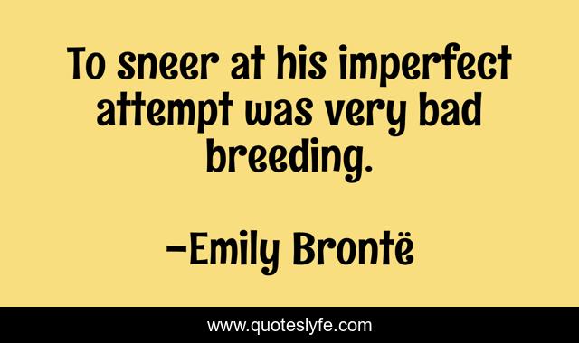 This page presents the quote "To sneer at his imperfect attempt was very bad breeding.". Author of this quote is Emily Brontë. This quote is about inexperience, snobbery, teaching,.