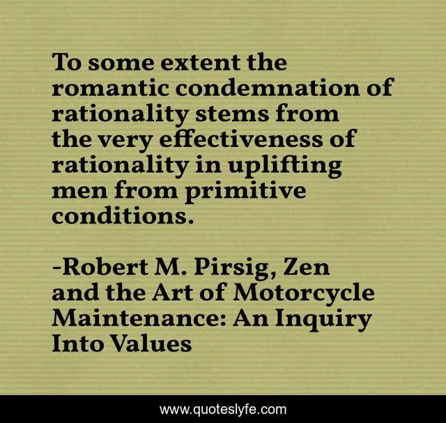 "Robert M. Pirsig, Zen and the Art of Motorcycle Maintenance: An Inquiry Into Values Quotes." Quoteslyfe.com, 2025. Sun. 07 Dec. 2025. <https://www.quoteslyfe.com/quote/To-some-extent-the-romantic-condemnation-of-181235>.
