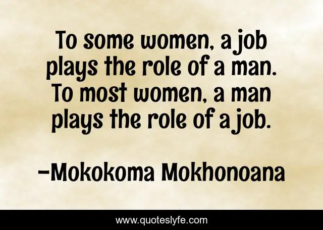 "Mokokoma Mokhonoana Quotes." Quoteslyfe.com, 2025. Sun. 07 Dec. 2025. <https://www.quoteslyfe.com/quote/To-some-women-a-job-plays-the-127869>.