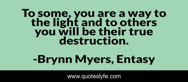 This page presents the quote "To some, you are a way to the light and to others you will be their true destruction.". Author of this quote is Brynn Myers, Entasy. This quote is about mythology, urban-fantasy, uf, paranormal,.