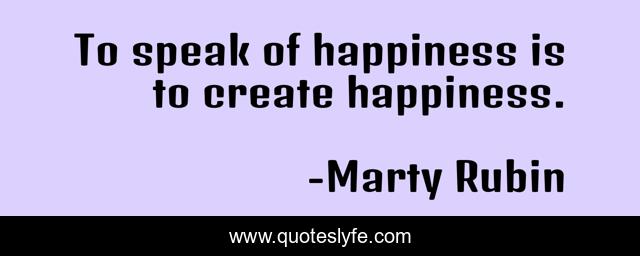This page presents the quote "To speak of happiness is to create happiness.". Author of this quote is Marty Rubin. This quote is about creating-happiness, speech, happiness,.