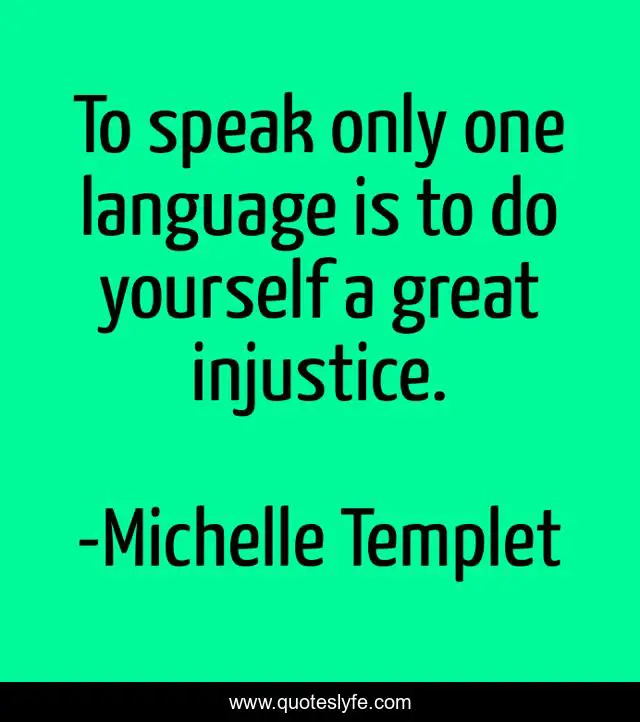 This page presents the quote "To speak only one language is to do yourself a great injustice.". Author of this quote is Michelle Templet. This quote is about philosophy, language,.