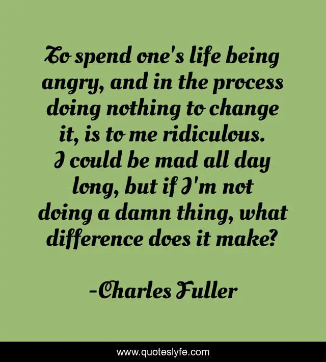 This page presents the quote "To spend one's life being angry, and in the process doing nothing to change it, is to me ridiculous. I could be mad all day long, but if I'm not doing a damn thing, what difference does it make?". Author of this quote is Charles Fuller. This quote is about action, activism, protest,.