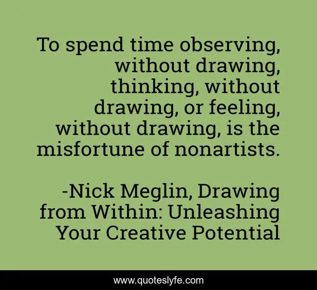 "Nick Meglin, Drawing from Within: Unleashing Your Creative Potential Quotes." Quoteslyfe.com, 2025. Sat. 06 Dec. 2025. <https://www.quoteslyfe.com/quote/To-spend-time-observing-without-drawing-thinking-65963>.