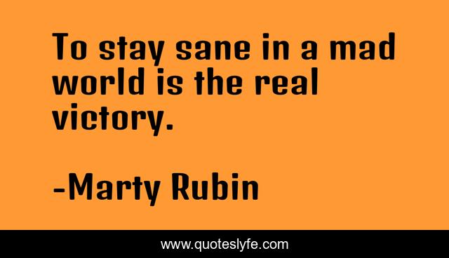 This page presents the quote "To stay sane in a mad world is the real victory.". Author of this quote is Marty Rubin. This quote is about sanity, madness,.