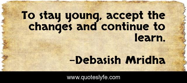 "Debasish Mridha Quotes." Quoteslyfe.com, 2025. Mon. 08 Dec. 2025. <https://www.quoteslyfe.com/quote/To-stay-young-accept-the-changes-and-34297>.