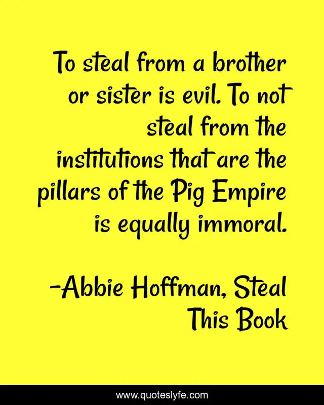 "Abbie Hoffman, Steal This Book Quotes." Quoteslyfe.com, 2025. Tue. 09 Dec. 2025. <https://www.quoteslyfe.com/quote/To-steal-from-a-brother-or-sister-163872>.
