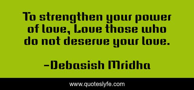 "Debasish Mridha Quotes." Quoteslyfe.com, 2025. Sun. 07 Dec. 2025. <https://www.quoteslyfe.com/quote/To-strengthen-your-power-of-love-Love-88852>.