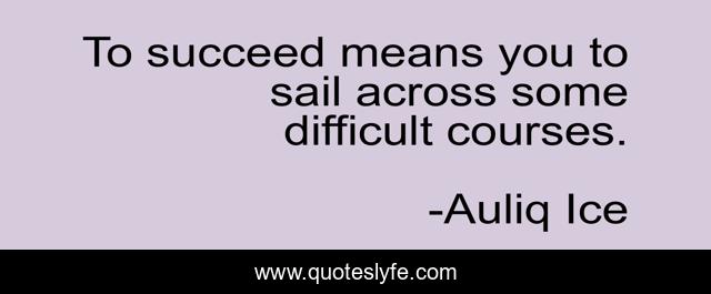This page presents the quote "To succeed means you to sail across some difficult courses.". Author of this quote is Auliq Ice. .