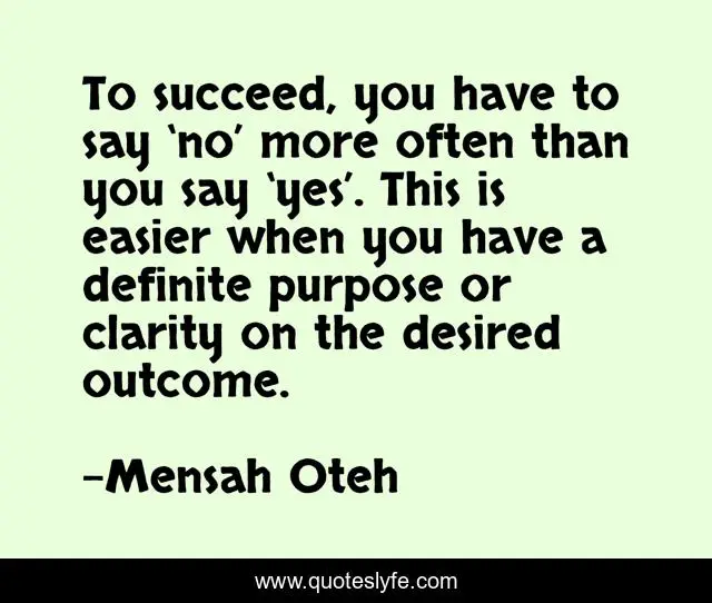 "Mensah Oteh Quotes." Quoteslyfe.com, 2025. Sun. 07 Dec. 2025. <https://www.quoteslyfe.com/quote/To-succeed-you-have-to-say-no-48911>.