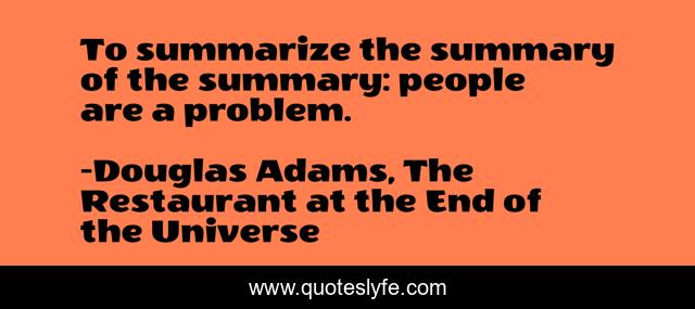 "Douglas Adams, The Restaurant at the End of the Universe Quotes." Quoteslyfe.com, 2025. Sat. 06 Dec. 2025. <https://www.quoteslyfe.com/quote/To-summarize-the-summary-of-the-summary-5872>.
