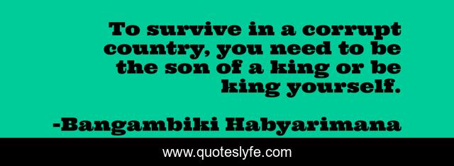 This page presents the quote "To survive in a corrupt country, you need to be the son of a king or be king yourself.". Author of this quote is Bangambiki Habyarimana. .