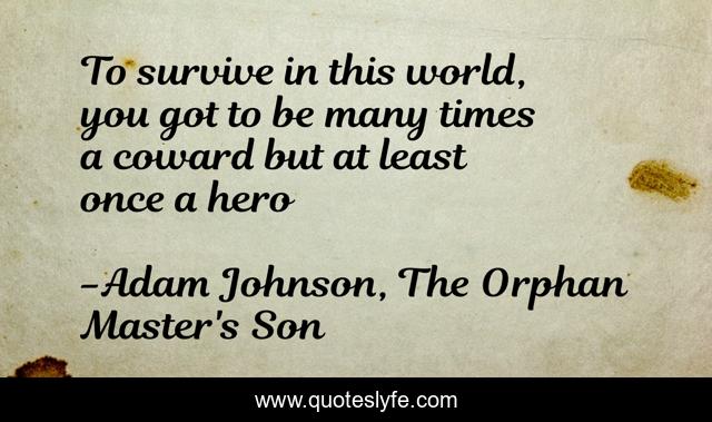 This page presents the quote "To survive in this world, you got to be many times a coward but at least once a hero". Author of this quote is Adam Johnson, The Orphan Master's Son. This quote is about coward, hero, heroism,.