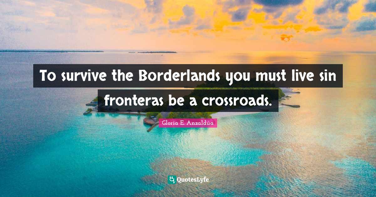 This page presents the quote "To survive the Borderlands you must live sin fronteras be a crossroads.". Author of this quote is Gloria E. Anzaldúa. This quote is about crossroads, sin,.