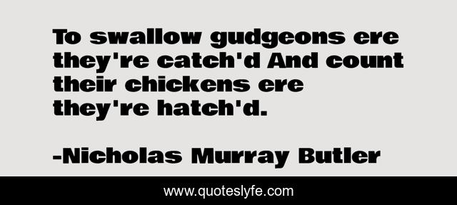 This page presents the quote "To swallow gudgeons ere they're catch'd And count their chickens ere they're hatch'd.". Author of this quote is Nicholas Murray Butler. .