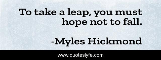 "Myles Hickmond Quotes." Quoteslyfe.com, 2025. Sat. 06 Dec. 2025. <https://www.quoteslyfe.com/quote/To-take-a-leap-you-must-hope-13351>.