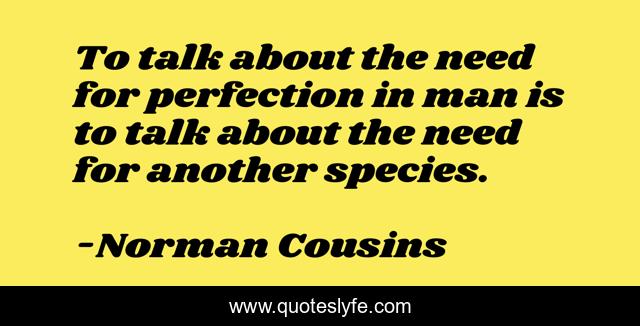 This page presents the quote "To talk about the need for perfection in man is to talk about the need for another species.". Author of this quote is Norman Cousins. .