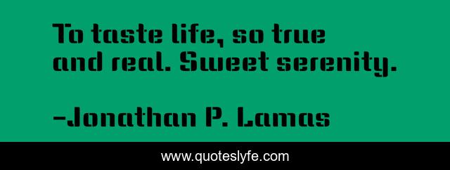 This page presents the quote "To taste life, so true and real. Sweet serenity.". Author of this quote is Jonathan P. Lamas. This quote is about life-and-living, serenity,.