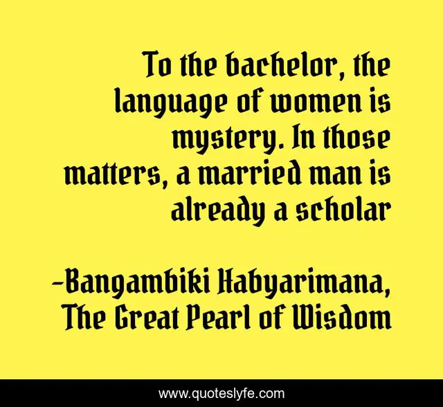 "Bangambiki Habyarimana, The Great Pearl of Wisdom Quotes." Quoteslyfe.com, 2025. Sun. 07 Dec. 2025. <https://www.quoteslyfe.com/quote/To-the-bachelor-the-language-of-women-77317>.