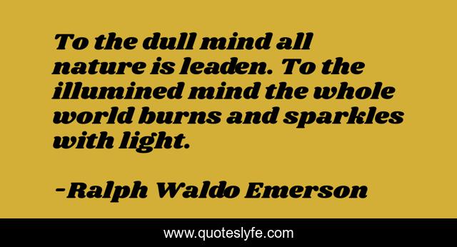 This page presents the quote "To the dull mind all nature is leaden. To the illumined mind the whole world burns and sparkles with light.". Author of this quote is Ralph Waldo Emerson. .