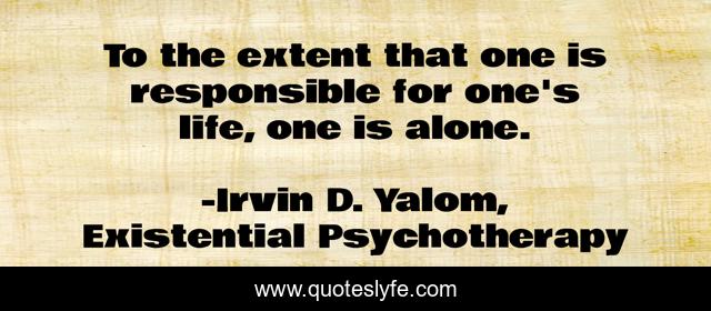 This page presents the quote "To the extent that one is responsible for one's life, one is alone.". Author of this quote is Irvin D. Yalom, Existential Psychotherapy. .
