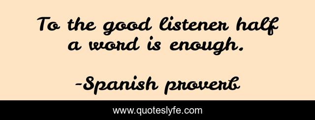 "Spanish proverb Quotes." Quoteslyfe.com, 2025. Fri. 05 Dec. 2025. <https://www.quoteslyfe.com/quote/To-the-good-listener-half-a-word-269194>.
