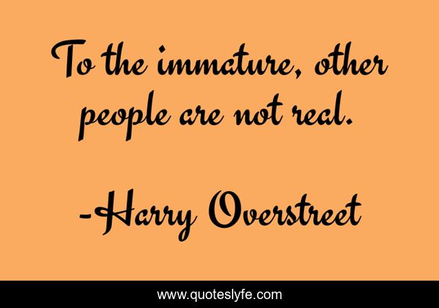 This page presents the quote "To the immature, other people are not real.". Author of this quote is Harry Overstreet. This quote is about relationships, immaturity, sensitivity, maturity,.
