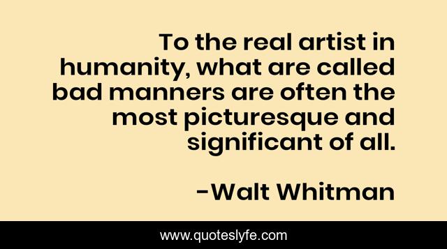This page presents the quote "To the real artist in humanity, what are called bad manners are often the most picturesque and significant of all.". Author of this quote is Walt Whitman. .