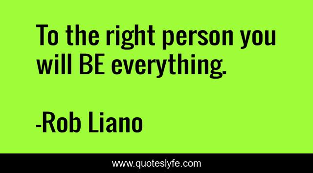 This page presents the quote "To the right person you will BE everything.". Author of this quote is Rob Liano. This quote is about love, relationship, romance, responsibility, karma, affection, inspiration,.