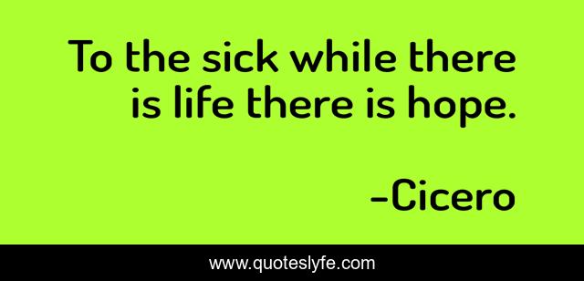 This page presents the quote "To the sick while there is life there is hope.". Author of this quote is Cicero. .