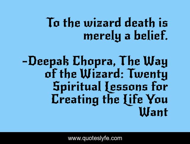 "Deepak Chopra, The Way of the Wizard: Twenty Spiritual Lessons for Creating the Life You Want Quotes." Quoteslyfe.com, 2025. Mon. 08 Dec. 2025. <https://www.quoteslyfe.com/quote/To-the-wizard-death-is-merely-a-44151>.