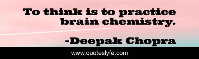 This page presents the quote "To think is to practice brain chemistry.". Author of this quote is Deepak Chopra. This quote is about brain, practice, think,.