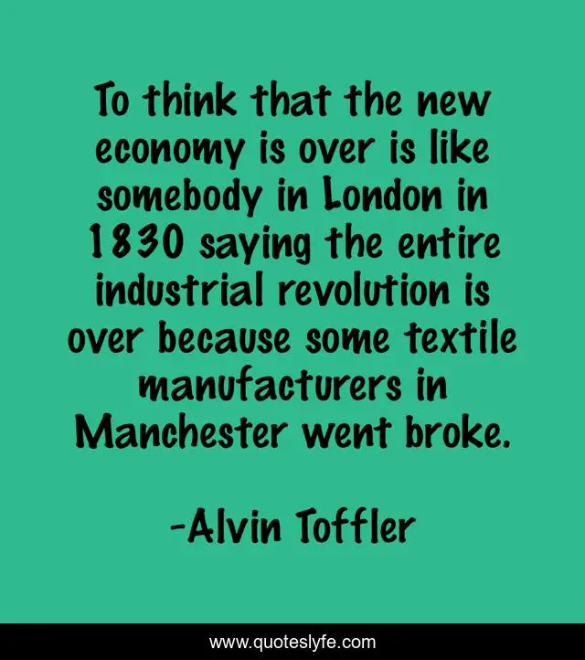 This page presents the quote "To think that the new economy is over is like somebody in London in 1830 saying the entire industrial revolution is over because some textile manufacturers in Manchester went broke.". Author of this quote is Alvin Toffler. This quote is about saying, revolution, think,.