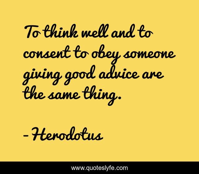 This page presents the quote "To think well and to consent to obey someone giving good advice are the same thing.". Author of this quote is Herodotus. This quote is about giving, advice, good,.